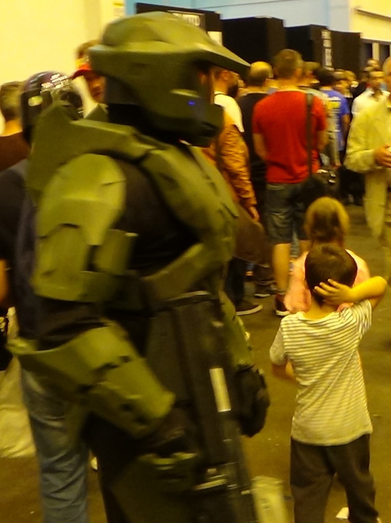 Halo Daddy MasterChief herds Children LFCC 2014 Published November 11, 2014 at 1364 × 1828 in London Film and Comic Con 2014 (Gallery) Daddy Masterchief Herds his Offspring.